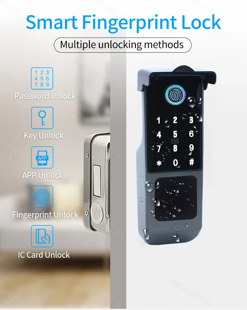 Upgrade your home or office security with the Fingerprint Smart Door Lock from ZhouSoco, offering keyless convenience, robust protection, and smart connectivity. Compatible with Tuya, Alexa, and Google Assistant, this lock lets you control access remotely, monitor entry, and enjoy multiple unlocking options. Its IP66 waterproof rating and durable stainless steel build make it perfect for any door type.
