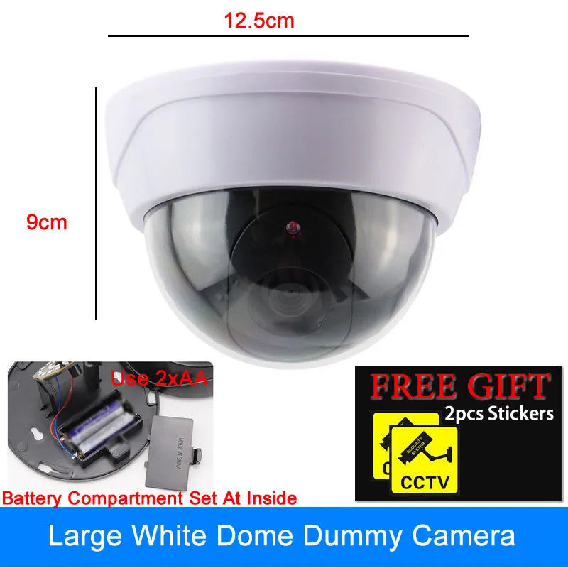 🔒 Wireless Black/White Dummy Dome CCTV Camera with Flashing LED
